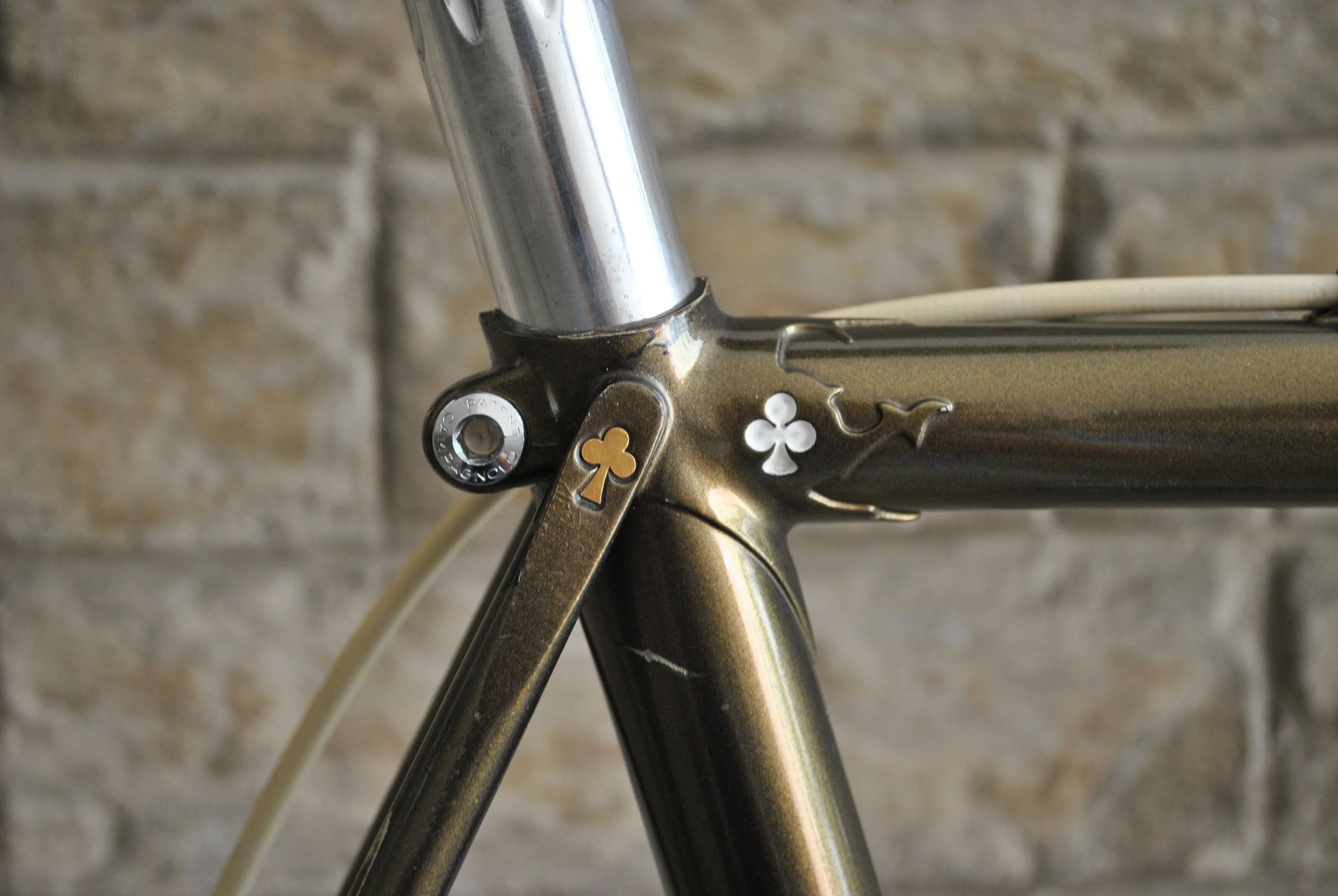 An den Sattelstreben wurden zwei vergoldete Colnago Kleeblätter verarbeitet